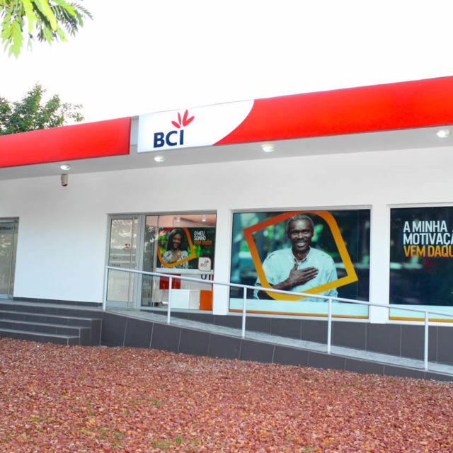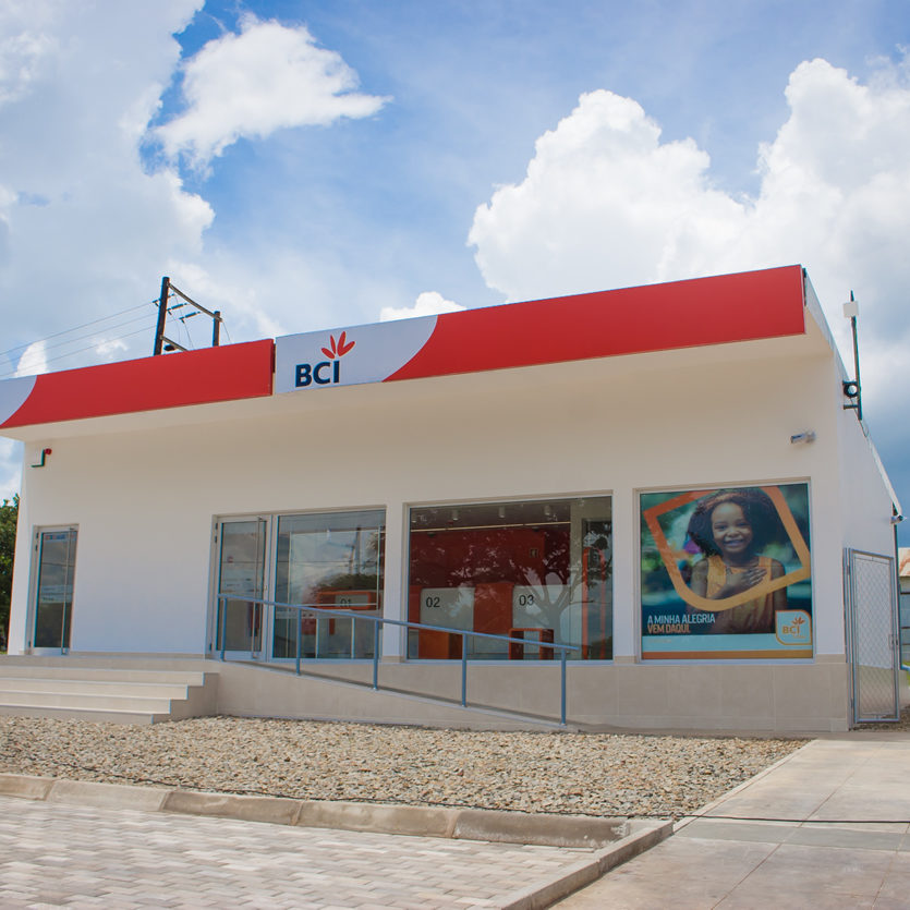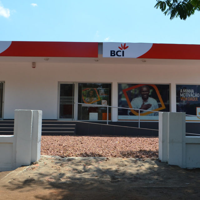 Construção da agência bancária no âmbito do projecto presidencial “Um Distrito, Um Banco”.